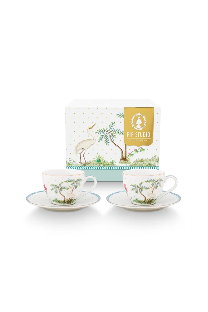Ikonická řada letošního jara a léta, řada Jolie, Vás vezme na dalekou cestu do exotických zemí, kde ve stínu palem si v klidu vychutnáváte kávu z těchto krásným espresso hrnečkách s talířky. Elegantní bílý tenkostěnný porcelán se zlatými maličkými puntíky, modrými detaily a kresbou delekých romantických ostrovů.