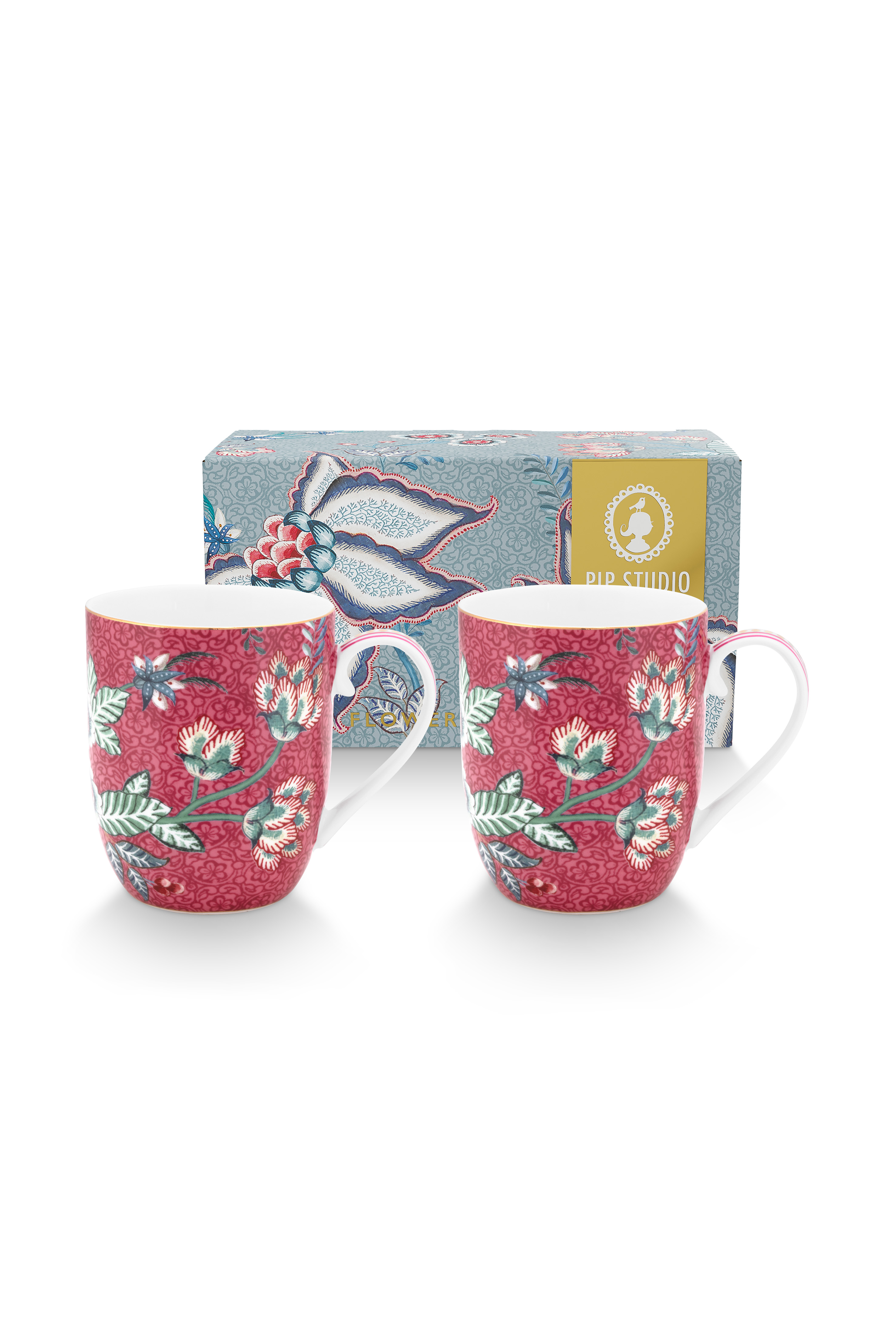 Pip Studio Flower Festival sada 2 hrnků 180ml, tmavě růžová