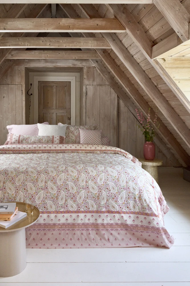 Povlečení Kairi Bloom vás přenese do kouzelné atmosféry Indie. Jemné drobné kvítky se skládají do půvabných vzorů, které zaujmou na první pohled. Zadní strana povlečení je laděna do něžného světle růžového proužku, který celkový vzhled krásně doplňuje. Bavlněný perkál navíc zaručuje mimořádný komfort, díky kterému se vám ráno nebude chtít opustit postel. Dopřejte si luxus s tímto jedinečným povlečením od Pip Studia.
