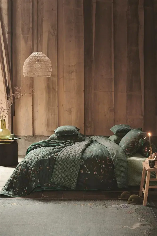 Pip Studio perkálové povlečení Kawai Flower tmavě zelené 200x200 + 2x 70x90 cm