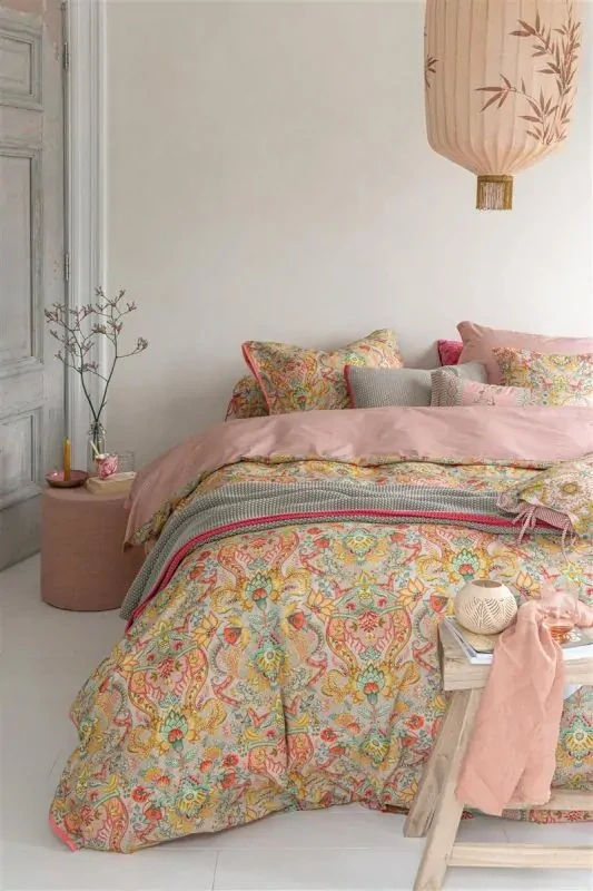 Pip Studio perkálové povlečení v jarním designu, který je pro Pip tak typický! Ornamentální dlaždicově uspořádané stylizované květy a dekory v hypnoticky kontrastujících odstínech žluté, růžové, modré a zelené. Veselý, výrazný, hřejivý design, který bude dominantou Vaší ložnice. Pip barevnou divočinu jemně uzavírá růžová lemovka, kterou návrhářka použila i pro elegantní vázání polštářů a k orámování peřiny.
