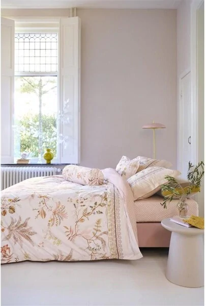 Motiv listů a květin je orámován elegantními proužky v horní části potisku. Zadní strana povlečení je v kombinaci tlumené korálové a ecru a dává tak vyznít čistotě a svěžesti bílého podkladu.