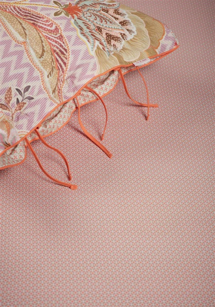 Prostěradlo z bavlněného perkálu v jemných tlumených barvách, které doplňují povlečení Pip studio. Dlaždicově poskládané ornamenty propojují designy rubových stran povlečení a polštářů.