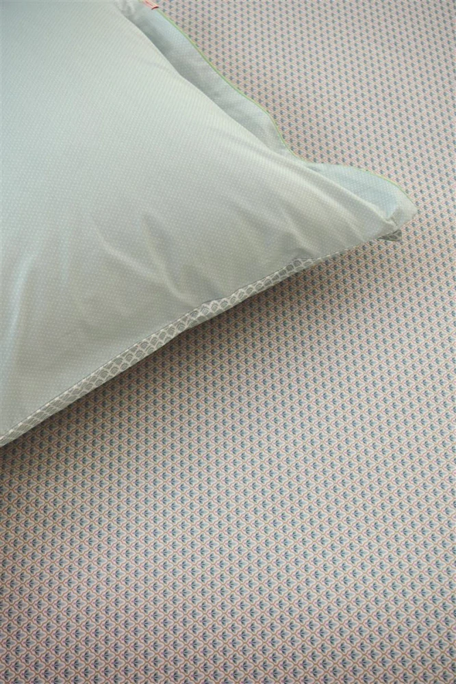 Prostěradlo z bavlněného perkálu v jemných tlumených barvách, které doplňují povlečení Pip studio. Dlaždicově poskládané ornamenty propojují designy rubových stran povlečení a polštářů.